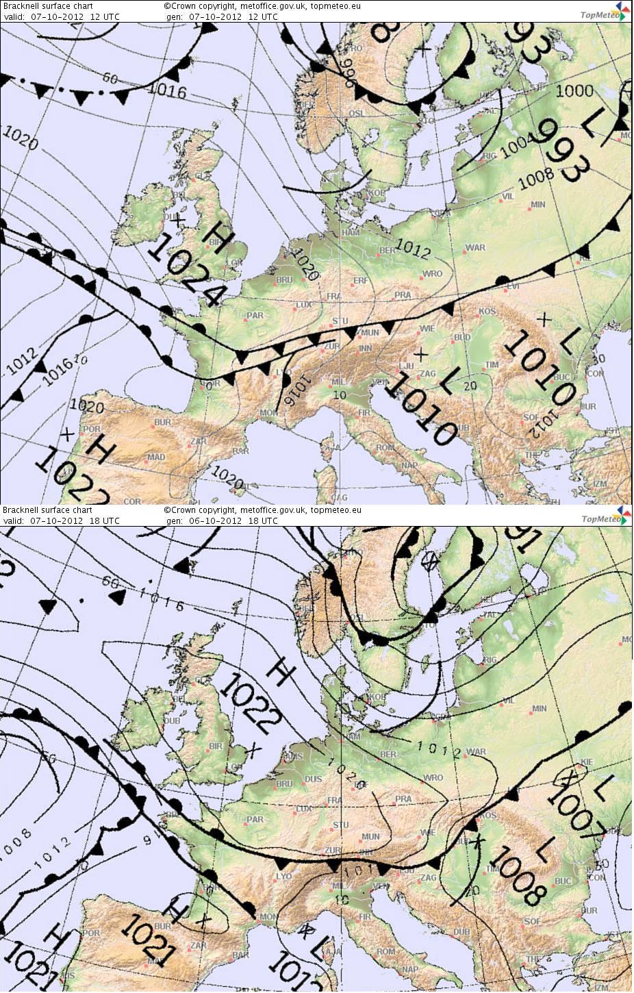 Wetterkarten Vorhersage für 12:00 und 18:00 UTC