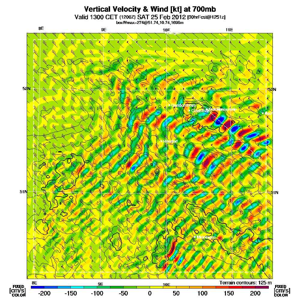 RASP-Wellenvorhersage 700 mbar, 12 UTC