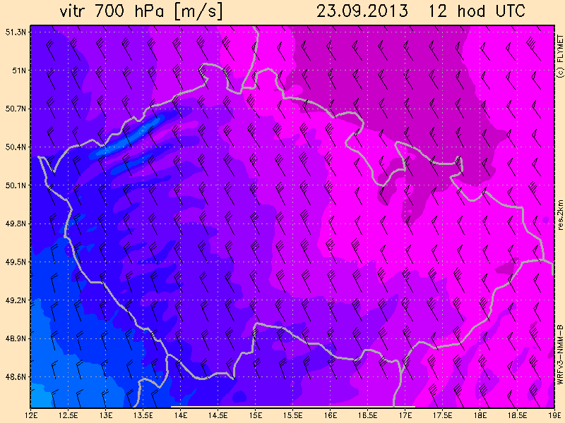 FLYMET Windvorhersage 700 mbar 12 UTC