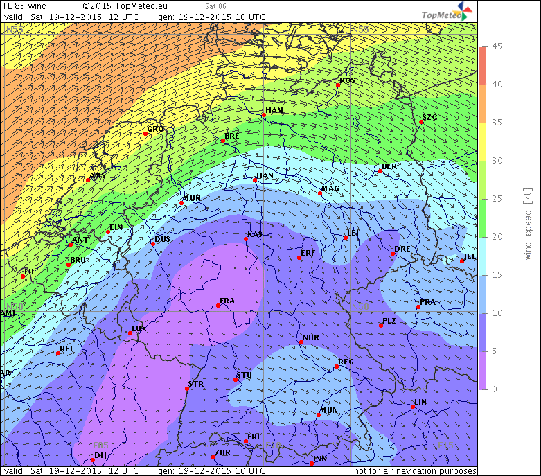 Windvorhersage FL85, 20.12.15, 12 UTC