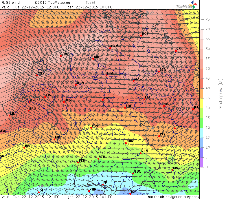Windvorhersage FL85, 23.12.15, 12 UTC
