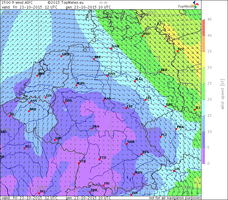 Flugrichtung Nordost zur Zeit der stärksten Wellenaktivität