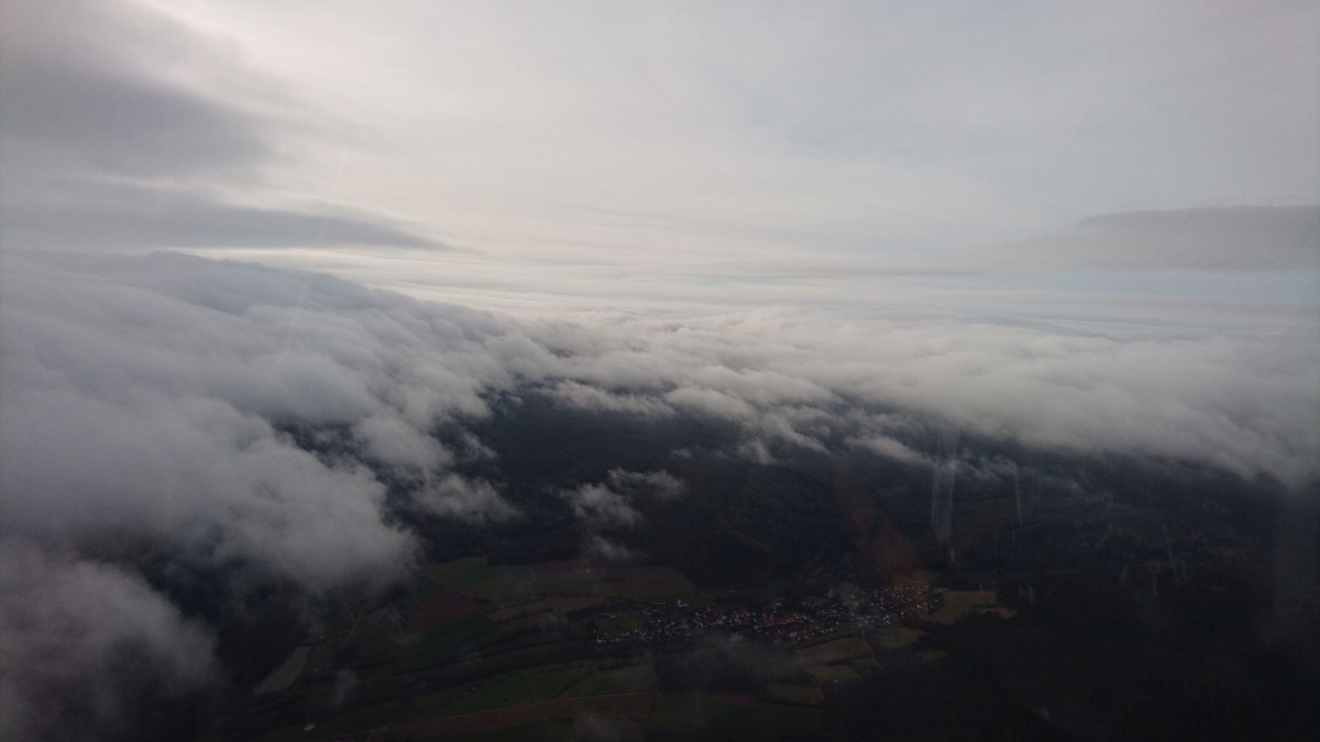Cockpit-Sicht von Welleneinstieg und Durchstieg durch die Wolkenlücke.