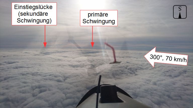Stratocumulus-Schicht mit Wolkenlücken der ersten und zweiten Schwingung von oben.