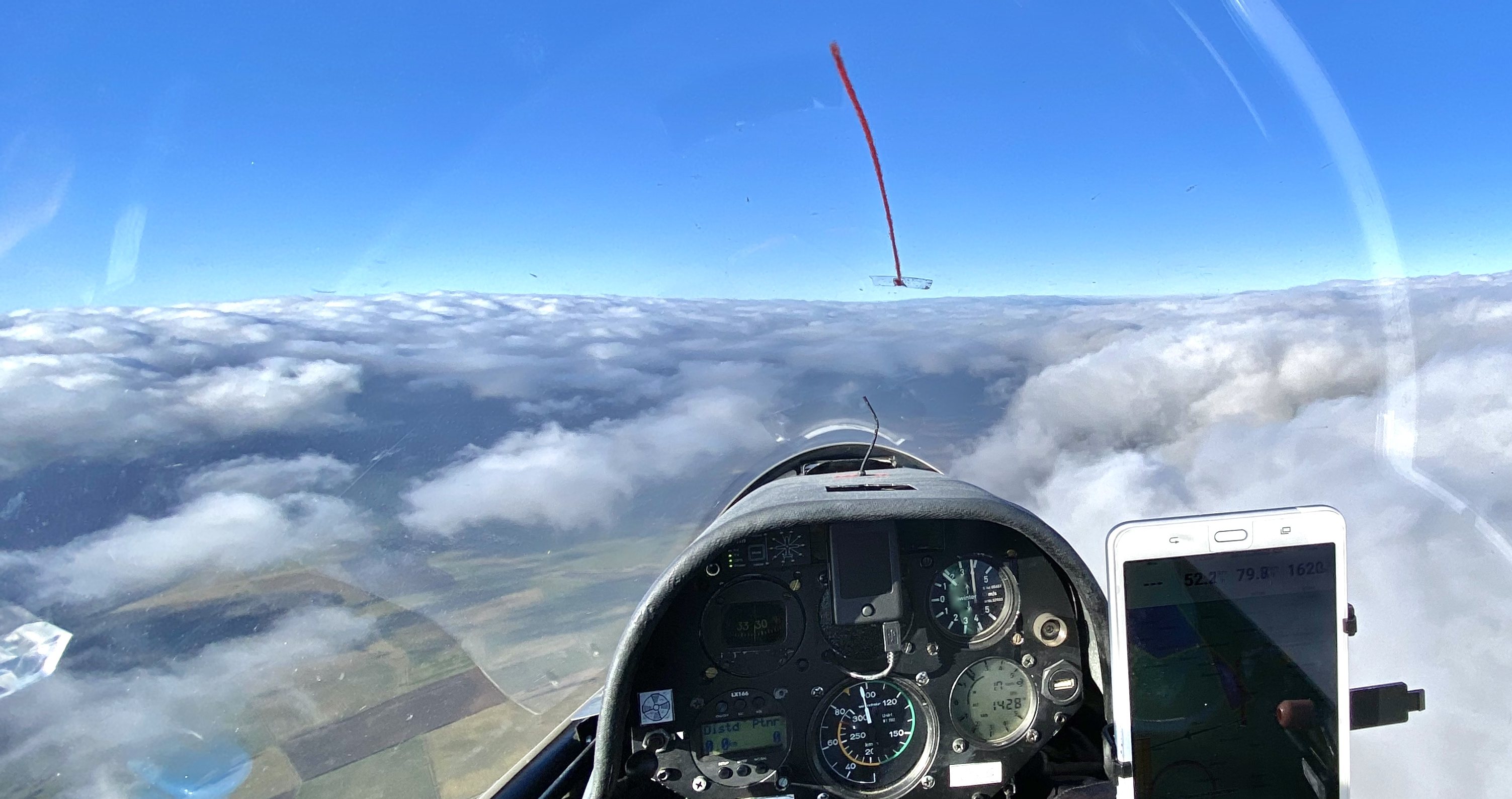 Flugweg und vorhergesagte Steiggebiete von Skysight