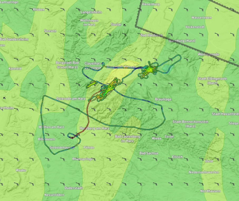 Flugweg DG400 und RASP/NL (1km)-Vorhersage