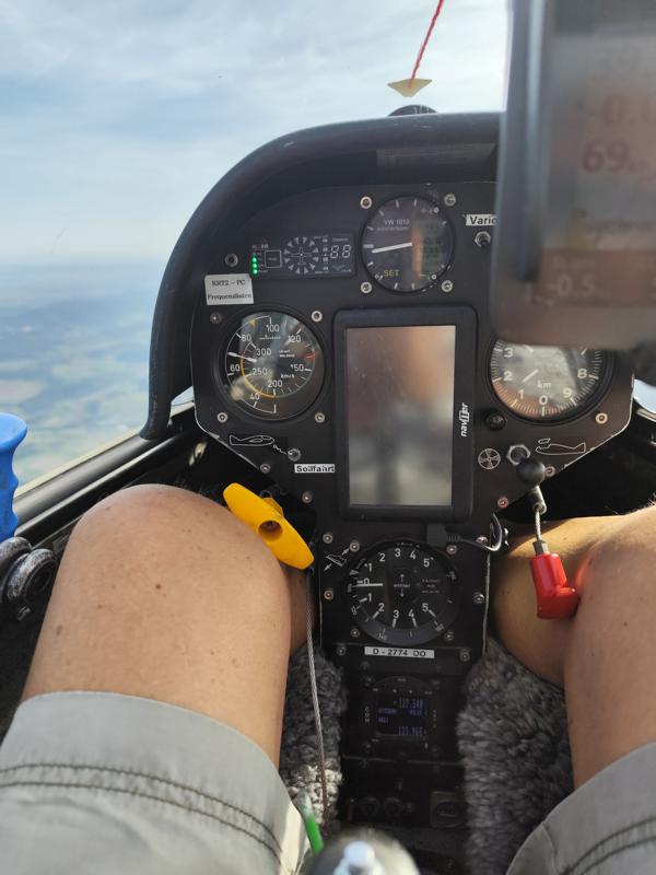 wurde schnell erreicht und auf Grund meiner sommerlichen Bekleidung wurde es sehr frisch, so dass ich mich zum Abstieg Richtung Flugplatz entschied. Um 14:23 war die Ls4 wieder am Boden. Mir war kalt, aber ich war glücklich und zufrieden, da ich wusste, es ist mein letzter Wellenflug und das 5 Tage vor meinem 78. Geburtstag, ein besseres Geschenk konnte ich mir nicht machen.
